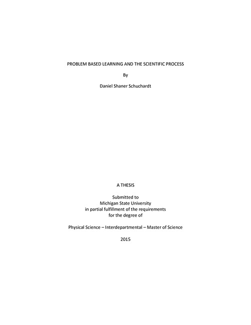 This research project was developed to inspire students to constructively use problem based learning and the scientific process to learn middle school science content. The student population in this study consisted of male and female seventh grade students. Students were presented with authentic problems that are connected to physical and chemical properties of matter. The intent of the study was to have students use the scientific process of looking at existing knowledge, generating learning issues or questions about the problems, and then developing a course of action to research and design experiments to model resolutions to the authentic problems. It was expected that students would improve their ability to actively engage with others in a problem solving process to achieve a deeper understanding of Michigan’s 7th Grade Level Content Expectations, the Next Generation Science Standards, and a scientific process. Problem based learning was statistically effective in students’ learning of the scientific process. Students statistically showed improvement on pre to posttest scores. The teaching method of Problem Based Learning was effective for seventh grade science students at Dowagiac Middle School