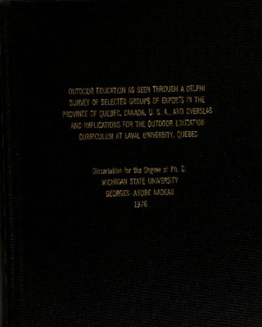 Outdoor education as seen through a Delphi survey of selected groups of experts in the province of Quebec, Canada, U.S.A., and overseas and implications for the outdoor education curriculum at Laval University, Quebec