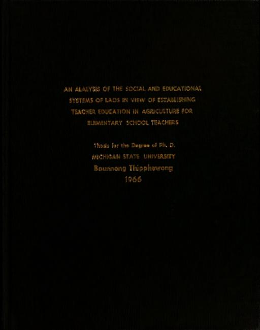 An analysis of the social and educational systems of Laos in view of establishing teacher education in agriculture for elementary school teachers