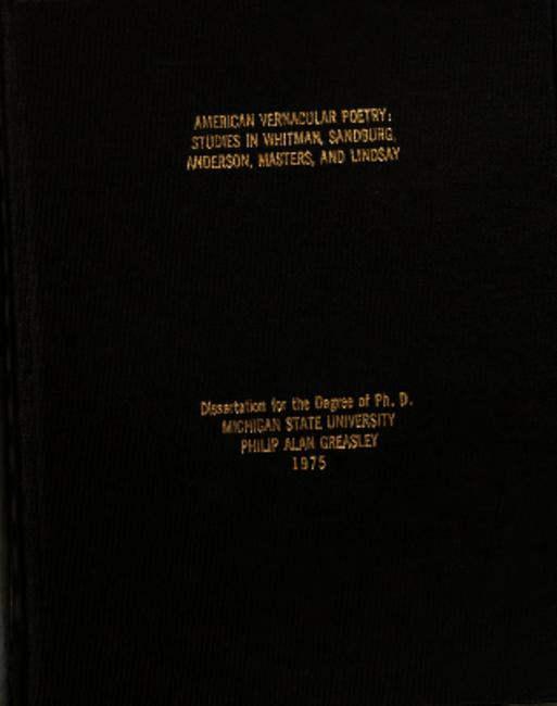 American vernacular poetry : studies in Whitman, Sandburg, Anderson, Masters, and Lindsay