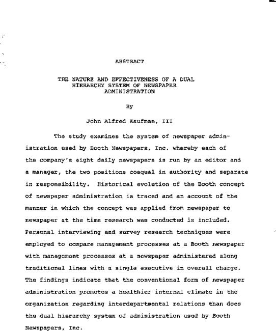 The nature and effectiveness of a dual hierarchy system of newspaper administration