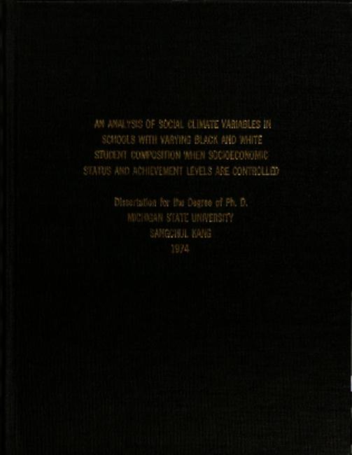 An analysis of social climate variables in schools with varying black and white student composition when socioeconomic status and achievement levels are controlled