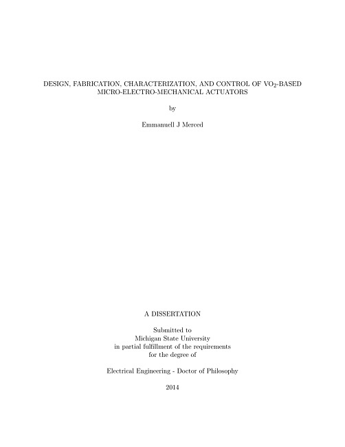 Design, fabrication, characterization, and control of VO2-based micro-electro-mechanical actuators