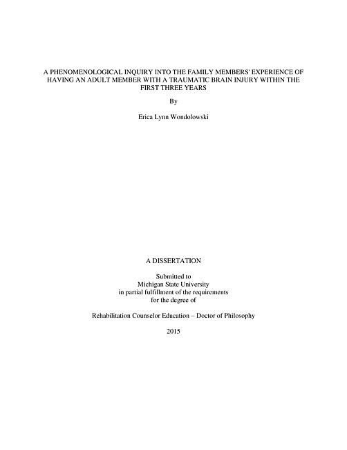 A phenomenological inquiry into the family members' experience of having an adult member with a traumatic brain injury within the first three years