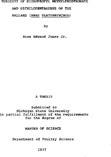 Toxicity of diisopropyl methylphosphonate and dicyclopentadiene on the Mallard (A̲n̲a̲s̲ P̲l̲a̲t̲y̲r̲h̲y̲n̲c̲h̲o̲s̲)