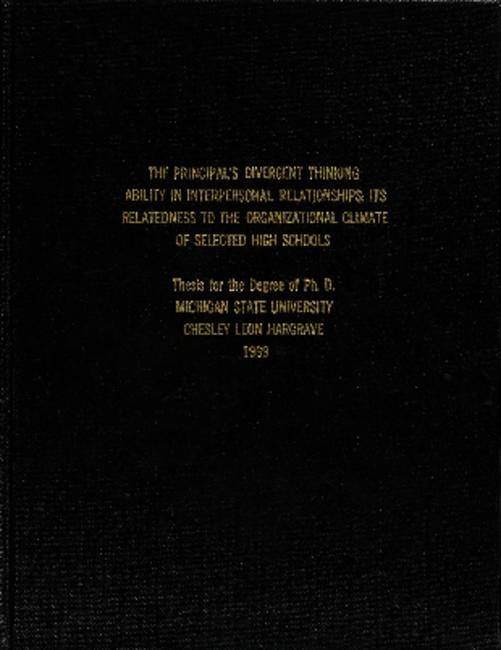 The principal's divergent thinking ability in interpersonal relationships : its relatedness to the organizational climate of selected high schools