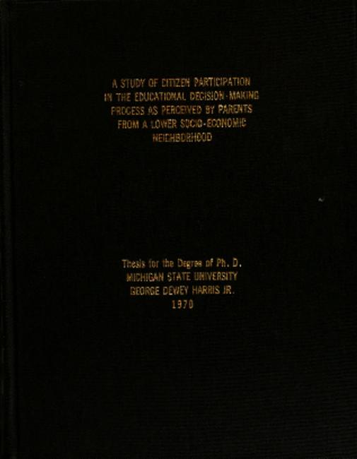 A study of citizen participation in the educational decision-making process as perceived by parents from a lower socio-economic neighborhood