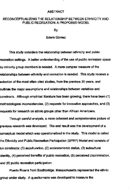Reconceptualizing the relationship between ethnicity and public recreation : a proposed model