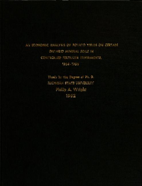 An economic analysis of potato yields on certain Ontario mineral soils in controlled fertilizer experiments, 1954-1956