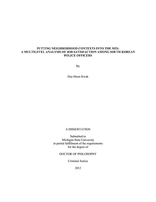 Putting neighborhood contexts into the mix : a multilevel analysis of job satisfaction among South Korean police officers
