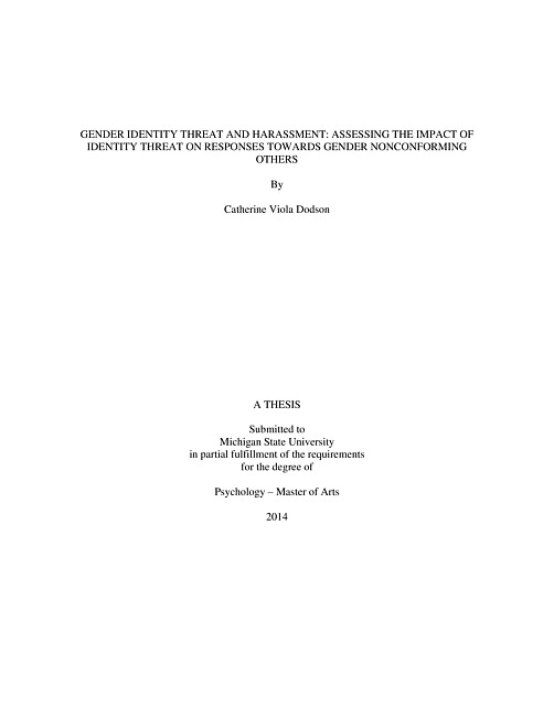 Gender identity threat and harassment : assessing the impact of identity threat on responses towards gender nonconforming others