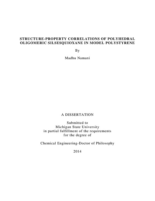 Structure-property correlations of polyhedral oligomeric silsesquioxane in model polystyrene