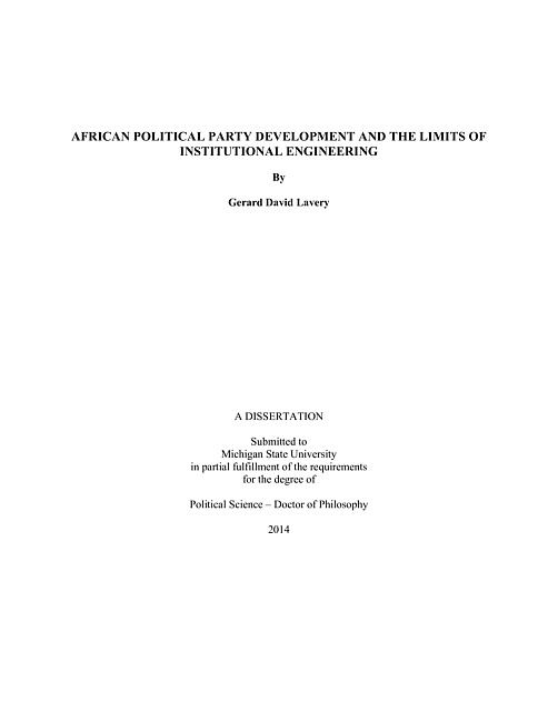 Why do some African countries have nationally oriented political parties and stable party systems while ethnic parties and volatility plague others? I address this puzzle by systematically analyzing differences in levels of party nationalization and electoral volatility within and across sub-Saharan African countries since 1990. To identify the factors that shape national parties and the systems in which they operate, this dissertation investigates the following research questions: Can political party laws encourage the development of national parties and stable party systems in Africa? What motivates politicians to comply with (or not) party laws that seek to build nationally oriented political parties over ethnic parties? Why do reforms to party laws work in some countries (some of the time) and not in others? How can we improve international political party assistance? Despite their theoretical and practical significance, scholars have largely ignored these questions in Africa.To address these questions, I employ mixed methods research to test a novel theoretical framework that centers on the forces that influence party leaders' decision to prioritize ethnic balancing over ethnic polarization in building their parties. To systematically examine variation in party development, the large-n component of this project uses data from the African Party Law and Nationalization Database (APLND), an original database covering 78 elections from 27 countries from across the region since1990. Statistical analysis confirms that higher levels of party system nationalization are associated with lower levels of electoral volatility; the more national the party system the more likely it is to be stable and enduring. As expected, the analyses also confirm that ethnic fractionalization, leadership legacy, and economic conditions are powerful predictors of African political party development. The main finding of the statistical analyses is that centripetal party laws -- regulations that attempt to establish broad-based parties that transcend ethno-regional cleavages -- are associated with both higher levels of party system nationalization and lower levels of electoral volatility. This relationship remains significant even after controlling for alternative explanations, which is important because it suggests that formal institutions are gaining traction in some African countries.The quantitative findings are complemented by in-depth examination of Kenya's multiparty elections since 1992 and comparative case study analysis of Benin, Zambia, and Ghana. Historical analysis, focus group research, and key-informant interview data suggests national parties and stable party systems are possible only when the forces that encourage multiethnic cooperation (horizontal coordination pressure) are more powerful than the pressures that compel party leaders to cater to their ethnic constituencies. In order for party laws to achieve their intended results they must increase horizontal coordination pressure on politicians thereby compelling them to invest in more organizationally robust and enduring national parties. Based on the key findings of this study, I conclude the dissertation by providing actionable policy recommendations designed to increase the development impact of international political party assistance.