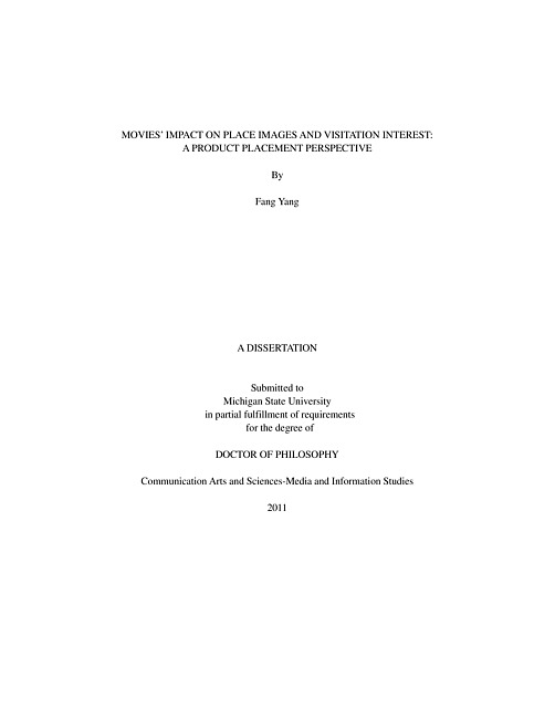 Movies' impact on place images and visitation interest : a product placement perspective