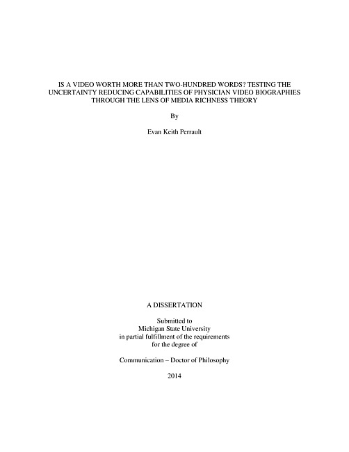 Is a video worth more than two-hundred words? : testing the uncertainty reducing capabilities of physician video biographies through the lens of media richness theory