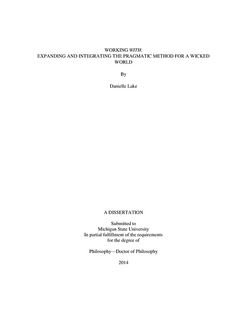 Working with : expanding and integrating the pragmatic method for a wicked world