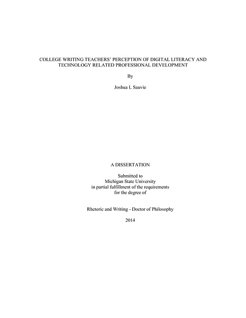 College writing teachers' perception of digital literacy and technology related professional development