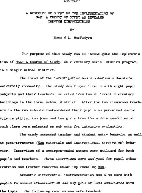 A descriptive study of the implementation of Man: A Course of Study as revealed through ethnocentrism