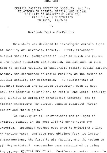 Certain factors affecting mobility and the relationship between spatial and social mobility of university faculty, particularly scientists, Ontario, 1967-68