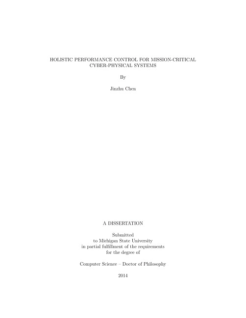 Recent years have seen the growing deployments of Cyber-Physical Systems (CPSs) in many mission-critical applications such as security, civil infrastructure, and transportation. These applications often impose stringent performance requirements on system sensing fidelity, timeliness, energy efficiency and reliability. However, existing approaches treat these concerns in isolation and hence are not suitable for CPSs where the system performances are dependent of each other because of the tight integration of computational and physical processes. In this dissertation, we investigate the dependencies between these performances and propose the holistic performance control approaches for two typical mission-critical CPSs, which are Wireless Cyber-phyiscal Surveillance (WCS) systems and data centers. We first propose a holistic approach called {\em Fidelity-Aware Utilization Controller} (FAUC) for WCS systems that combine low-end sensors with cameras for large-scale ad hoc surveillance in unplanned environments. By integrating data fusion with feedback control, FAUC enforces a CPU utilization upper bound to ensure the system's real-time schedulability under dynamic CPU workloads at runtime because of stochastic detection results. At the same time, FAUC optimizes system fidelity and adjusts the control objective of CPU utilization adaptively in the presence of variations of target/noise characteristics. The testbed experiments and the trace-driven simulations show that FAUC can achieve robust fidelity and real-time guarantees in dynamic environments.We then present a proactive thermal and energy control approach for data centers to improve the energy efficiency while ensuring the data center reliability. It consists of a high-fidelity real-time temperature prediction system and a predictive thermal and energy control (PTEC) system. The prediction system integrates Computational Fluid Dynamics (CFD) modeling, in situ wireless sensing and real-time data-driven prediction. To ensure the forecasting fidelity, we leverage the realistic physical thermodynamic models of CFD to generate transient temperature distribution and calibrate it using sensor feedback. Both simulated temperature distribution and sensor measurements are then used to train a real-time prediction algorithm. Based on the temperature prediction system, we propose the PTEC system, which leverages the server built-in sensors and monitoring utilities, as well as a network of wireless sensors to monitor the thermal and power conditions of a data center. It predicts the server inlet temperatures in real-time, and optimizes temperature setpoints and cold air supply rates of cooling systems, as well as the speeds of server internal fans, to minimize their overall energy consumption. To ensure the data center reliability, PTEC enforces a set of thermal safety requirements including the upper bounds on server inlet temperatures and their variations, to prevent server overheating and reduce server hardware failure rate. A partition-based approach is proposed to solve the control problem efficiently for large-scale data centers. Extensive testbed experiments and trace-driven CFD simulations show that PTEC can safely reduce substantial cooling and circulation energy consumption compared with traditional approaches, and can adapt to the realistic and dynamic data center workload.