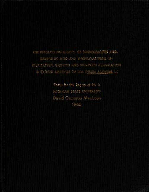 The interacting effects of 3-indoleacetic acid, gibberellic acid and 6-benzyladenine on respiration, growth and nitrogen assimilation in excised embryos of pea (Pisum sativum, L)