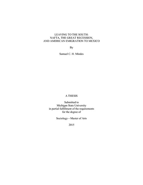 Leaving to the south : NAFTA, the Great Recession, and American emigration to Mexico