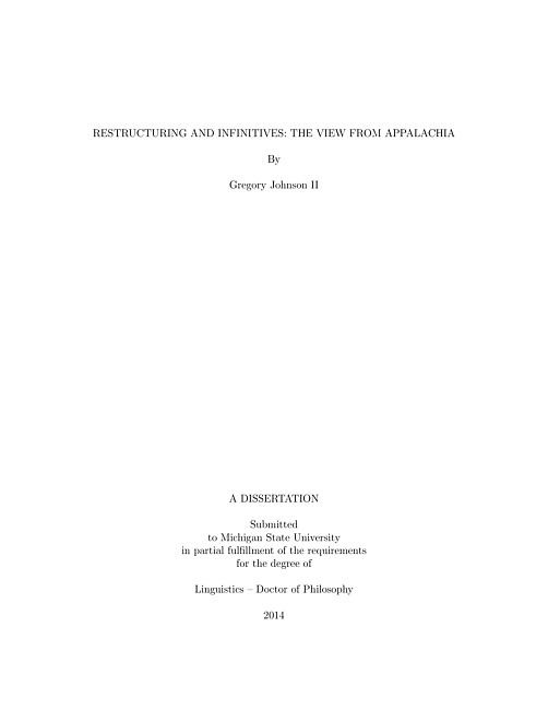 This dissertation explores four instances of restructuring (clause union) in verb forms found in the Appalachian English (AppE) of eastern Kentucky. I compare novel restructuring analyses of causative and experiencer have, perception verbs, and the verb liketa. In addition I examine restructuring as reanalysis in the non-finite wh-adjunct how come. In each case, syntactic and semantic diagnostics for clause structure are used to identify types of restructuring and to develop a syntax for these understudied forms. One main goal of the dissertation is to apply Wurmbrand's mono-clausal approach to restructuring (Wurmbrand 2001) to cases of micro-variation between standard and Appalachian English. This reveals the difference between morphosyntactic variation present in bundles of features manipulated by the syntax and variation which ultimately stems not from the syntax, but from differences in the inventory of post-syntactic morphological rules in standard and non-standard grammars. For instance, I argue that variation in the form of causative and experiencer have complements in AppE is not the result of a different syntax but rather the result of variation in post-syntactic morphological rules. Investigation of the boundary between variation in syntactic objects and morphological operations performed on those objects will allow us a cleaner view of micro-variation in restructuring phenomena. On the other hand, the study of perception complements shows that differences in complements of this dialect are not always only superficially different. For example, in contrast with Standard English, perception complements in the dialect allow matrix passivization. Following major strands in the literature which argue that passive participle -en blocks some relations between matrix and embedded clauses, this is predicted in a language where the perfect and passive syntactic heads do not license participle morphology on the verb. I argue that Appalachian English is just such a dialect. Irregular forms have leveled to the extent that that distinction between preterite and participle forms is unclear. I argue that matrix passivization in perception verbs is the result of grammatical reanalysis of the perfect and participle heads; they are no longer interveners. This means that any distinctions in past and participle forms present in adult grammars of AppE speakers are superficial and occur by way of what I have termed `morphological enrichment' or unleveling; a process that most likely occurs in language/dialect contact situations with the standard. Essentially, morphological enrichment is the opposite of leveling by impoverishment. Secondly, comparison of perception complements with the restructuring have complements reveals that a unified account of the behavior of both sets of complements requires independent mechanisms such as agreement or head-movement; mechanisms previously used to explain restructuring in some bi-clausal accounts. Analysis of the AppE verb form liketa reveals a syntax similar to wanna contraction found in Standard English. Again, I apply a Wurmbrand style mono-clausal approach to restructuring to the form and make a theoretical comparison with a previous bi-clausal approach to wanna contraction. The major finding is that the mono-clausal approach is more favorable as it requires less stipulation with respect to restructuring. However, in the end, a proper analysis and comparison of the forms requires that they be differentiated by agree relations between the restructuring verb and the embedded auxiliaries. Finally, I analyze the syntax of non-finite how come complements found in AppE as a type of matrix clause restructuring and reanalysis.