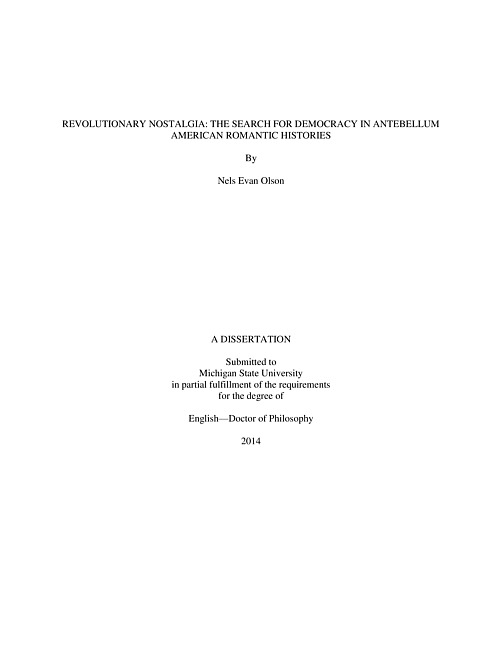 Revolutionary nostalgia : the search for democracy in Antebellum American romantic histories