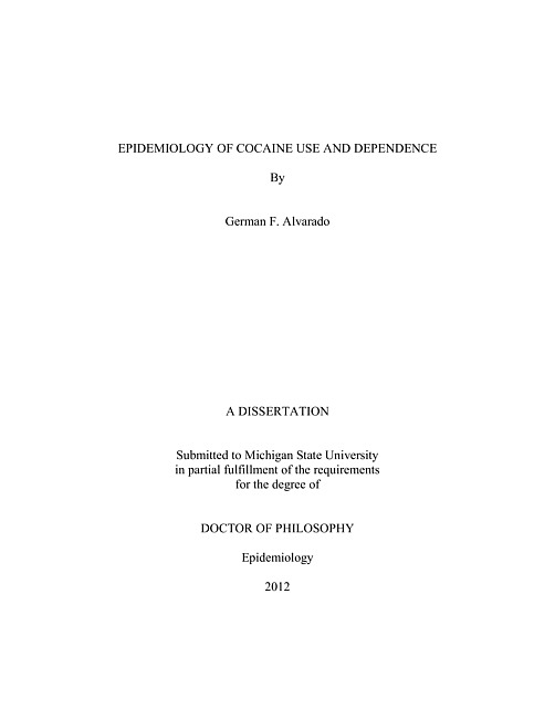 The following dissertation presents original research on selected topics in the epidemiology of cocaine use and dependence. The research consists of inter-related studies that deal with gaps in scientific knowledge about the topics pertinent to drug dependence. The dissertation is focused on four studies:In study one, I seek to estimate a suspected causal association between cocaine use and the occurrence of panic during adolescence and young adulthood, building upon prior study results based upon adult samples. The data are from an epidemiological sample of young adults, observed longitudinally from primary school to that time. The main finding is a modest but generally statistically robust association linking cocaine use and the occurrence of a panic attack-like experience.In study two, I attempt to estimate a suspected causal association linking earlier onset of cocaine use with later risk of newly incident panic attack in adults. The data are from an epidemiological sample of Americans aged 18-44 years at the time of cross-sectional and retrospective assessment. The main findings of this study confirm prior evidence on the suspected causal association linking cocaine use with subsequent panic attack-like events. In this study, temporal sequencing of the association has been assured to the extent possible in retrospective age of onset data, with a conservative approach when the first cocaine and panic occurred in the same year.In study three, the aim is to estimate the risk of becoming cocaine dependent in the first months and years after onset of cocaine use, and to study suspected determinants of becoming dependent within 24 months after cocaine use starts, based on nationally representative samples of non-institutionalized citizens of the United States aged 12 years and older. The main findings of this study are as follows. First, an estimated 6-7% of recent-onset users develop cocaine dependence. Excess risk of cocaine dependence was found for females. Occurrence of cocaine dependence was greater among newly incident users who had started to smoke crack cocaine, as compared to those who had not smoked crack. No remarkable associations were found with the other variables under study (e.g., age, race-ethnicity).In study four, I seek to provide epidemiological evidence on predictors of who has started cocaine use in the last four years but has stopped using cocaine. The data for this research also are from nationally representative samples. The approach starts with exploratory analyses of data from calendar year 2003 (CY2003). Then, the model is re-evaluated using data from an independent sample drawn in CY2008. The main findings are as follows. First, among those whose onset of cocaine use was within the four years prior to the date of the survey assessment, an estimated 13-16% had remained cocaine users within the prior 30 days; and an estimated 34% used cocaine within past 12 months but not in the past 30 days. An estimated 50-53% had not used cocaine in the previous 12 months before the assessment. It was found that people with age of cocaine onset at 20 years old or greater are twofold more likely to stop; this is the only finding from the CY2003 analysis that could be replicated in the CY2008 analysis. Cocaine cessation was not found to be reliably associated with sex, education, or using crack-cocaine.