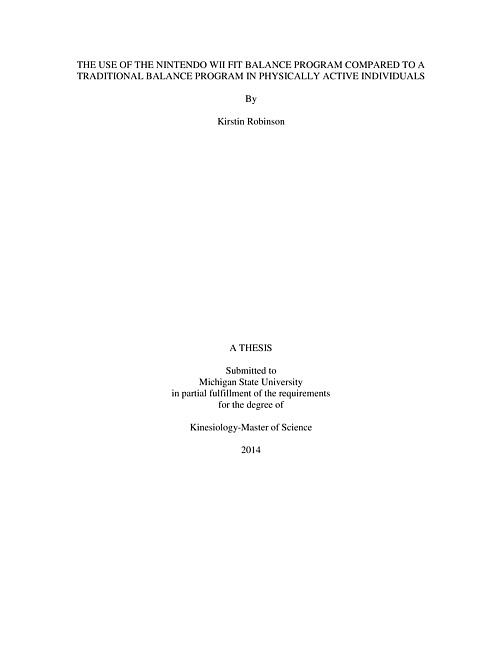 The use of the Nintendo Wii Fit balance program compared to a traditional balance program in physically active individuals