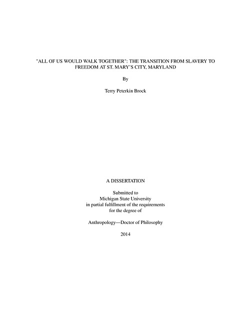 "All of us would walk together" : the transition from slavery to freedom at St. Mary's City, Maryland