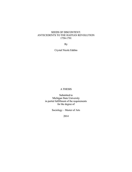 Seeds of discontent : antecedents to the Haitian Revolution 1750-1791