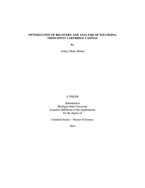 Optimization of recovery and analysis of touch DNA from spent cartridge casings
