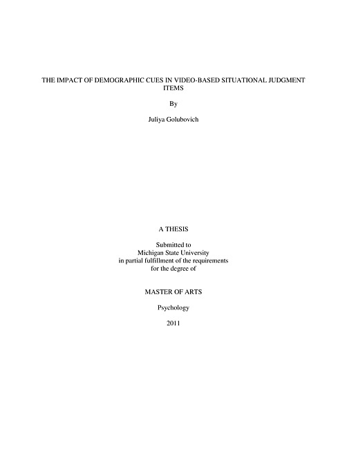 The impact of demographic cues in video-based situational judgment items