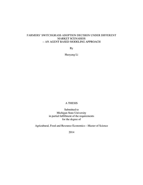 Farmers' switchgrass adoption decision under different market scenarios : an agent based modeling approach