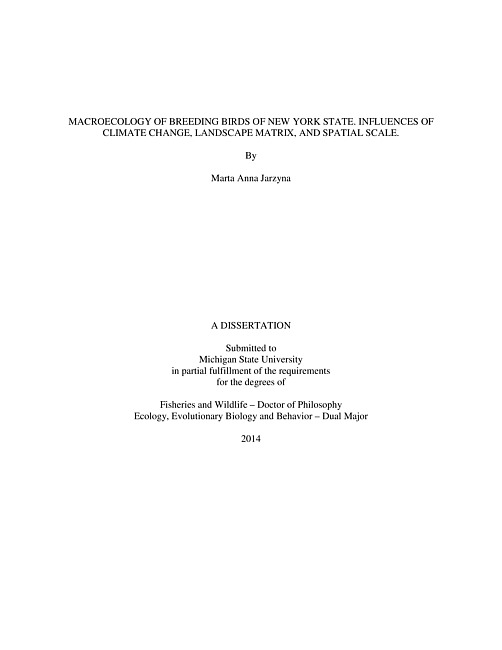 Macroecology of breeding birds of New York State. Influences of climate change, landscape matrix, and spatial scale