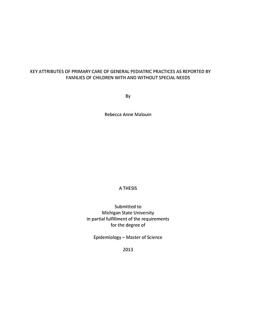 Key attributes of primary care of general pediatric practices as reported by families of children with and without special needs