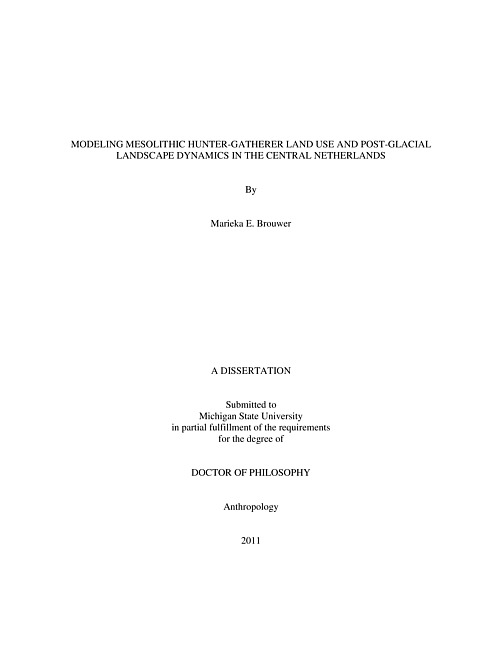 ABSTRACTMODELING MESOLITHIC HUNTER-GATHERER LAND USE AND POST-GLACIAL LANDSCAPE DYNAMICS IN THE CENTRAL NETHERLANDSByMarieka E. BrouwerDramatic and widespread environmental changes occurred during the early Post-glacial period in Europe (10,000-6000 14C B.P.). These changes included climate amelioration, sea-level rise, vegetation succession, and landscape transformation. Mesolithic hunter-gatherers living in the central Netherlands adapted to these dramatic shifts in landscape configuration and character in various ways. The aim of this study is to identify potential Mesolithic land use behaviors based on ethnographic data, and to develop a method of determining which behaviors were most suitable in specific environmental contexts.To accomplish this goal, a multi-criteria decision-making model is generated using GIS and environmental modeling. The model framework begins with a detailed landscape reconstruction for three separate representative study areas. To this base, floral and faunal components are added, depicting areas more or less suitable as habitat for particular species. The species modeled are those relevant to Mesolithic hunter-gatherer life. The completed model framework, incorporating reconstructed paleo-environments, allows simulations of decision-making choice with regard to hunter-gatherer land use. Each choice is keyed to a number of broad objectives and specific criteria for querying the landscape reconstruction, thereby acting as a heuristic device for testing the interplay and outcomes of different combinations of ethnographically-derived criteria and objectives. The behavioral model identifies areas most likely to have been used for specific resource provisioning and settlement purposes, and the criteria and objectives that condition such outcomes. The model reveals the degree to which edge areas and/or distances to a variety of biotopes conditions general hunter-gatherer land use and exploitation. Further, as sea-levels rose and large parts of the central river valley became inundated or influenced by the tides, wetland adapted hunter-gatherers would have gained a competitive advantage. The results of this model compare well with the archaeological record for the Mesolithic in the Netherlands, predicting that a wetland adaptation would be highly viable only in the western portion of the river valley during the latter half of the period. This prediction is indeed borne out by the archaeological evidence. The model also sheds light on some of the potential decision-making processes and cultural adaptations of past hunter-gatherers, in addition to generating practical predictions concerning areas of high potential for future hunter-gatherer research and heritage management.