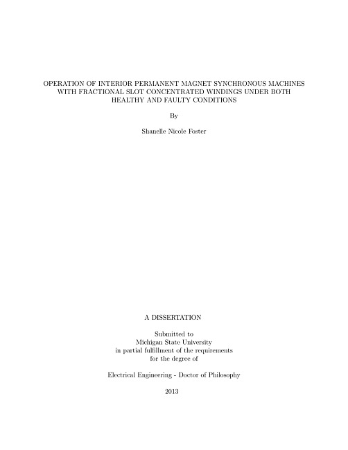 Operation of interior permanent magnet synchronous machines with fractional slot concentrated windings under both healthy and faulty conditions