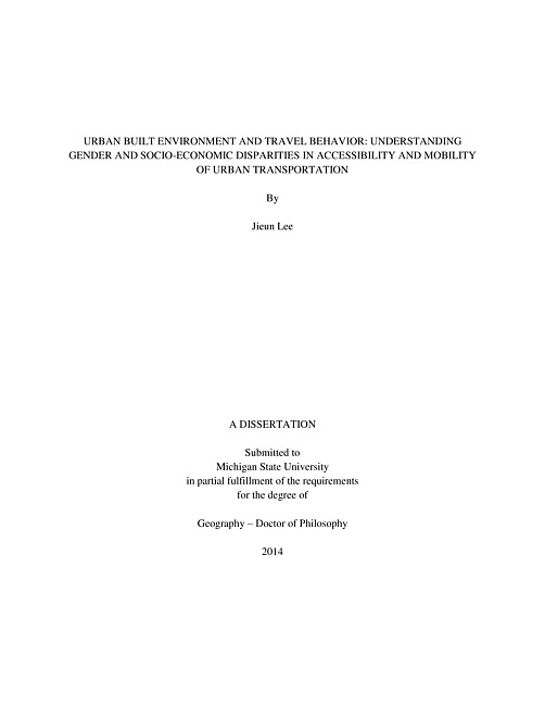 Urban built environment and travel behavior : understanding gender and socio-economic disparities in accessibility and mobility of urban transportation