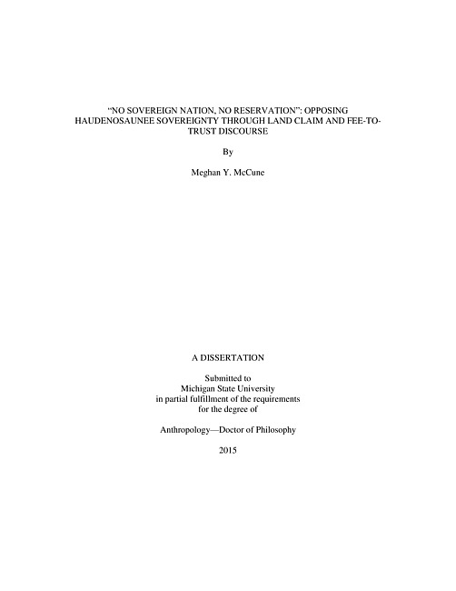 "No sovereign nation, no reservation" : opposing Haudenosaunee sovereignty through land claim and fee-to-trust discourse
