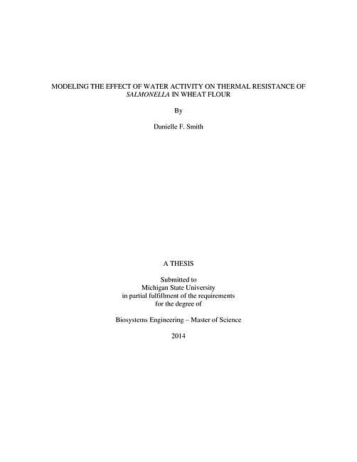 Modeling the effect of water activity on thermal resistance of Salmonella in wheat flour