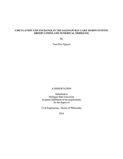 Circulation and exchange in the Saginaw Bay-Lake Huron system : observations and numerical modeling