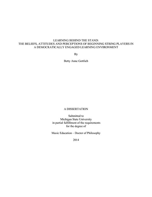 Learning behind the stand : the beliefs, attitudes and perceptions of beginning string players in a democratically engaged learning environment