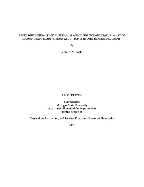 Background knowledge, curriculum, and socioeconomic status : what do second-grade readers know about topics in core reading programs