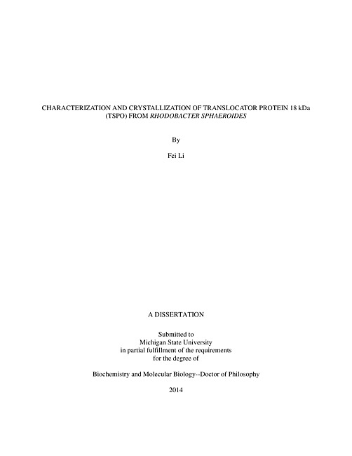 Characterization and crystallization of translocator protein 18 kDa (TSPO) from Rhodobacter sphaeroides