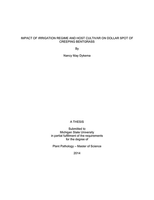 Impact of irrigation regime and host cultivar on dollar spot of creeping bentgrass