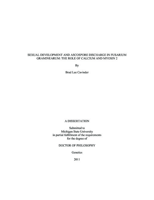 Sexual development and ascospore discharge in Fusarium graminearum : the role of calcium and myosin 2