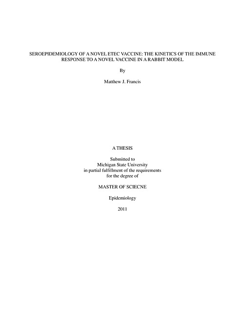 Seroepidemiology of a novel ETEC vaccine : the kinetics of the immune response to a novel vaccine in a rabbit model