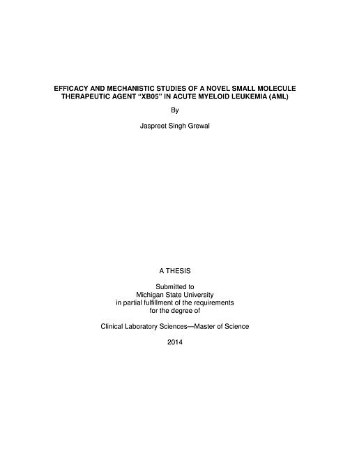 Efficacy and mechanistic studies of a novel small molecule therapeutic agent "XB05" in acute myeloid leukemia (AML